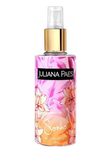 Juliana Paes Sonho de Juliana Paes é um perfume Floral Frutado Feminino. Juliana Paes Sonho foi lançada em 2020. As notas de topo são: Néroli, Bergamota e Toranja. As notas de coração são: Jasmim, Peônia e Frésia. As notas de fundo são: Cedro, Baunilha e Almíscar.