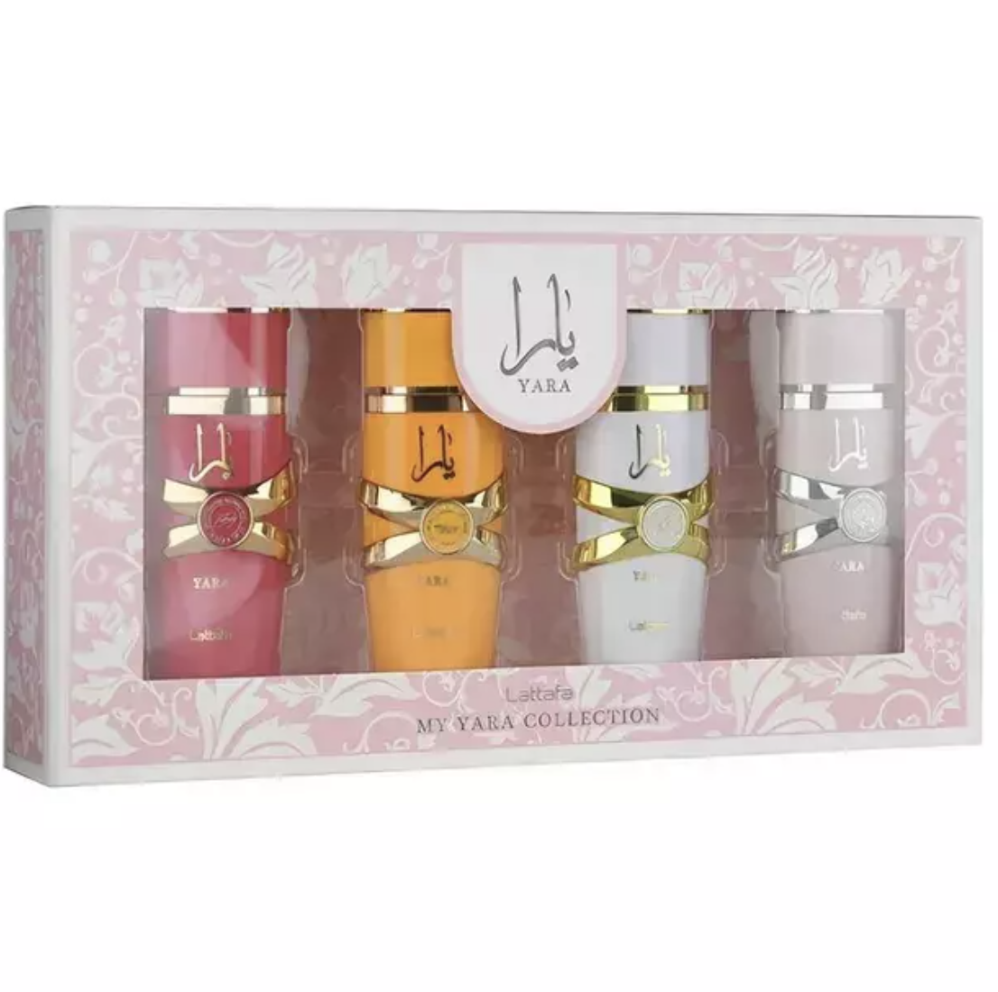 O kit de perfumes Lattafa My Yara Collection é uma seleção sofisticada de quatro fragrâncias femininas que capturam diferentes facetas.
